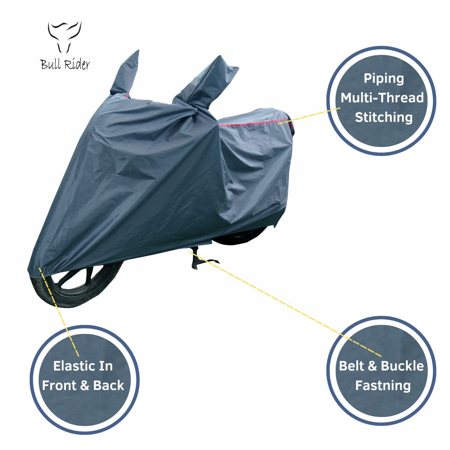 Bull Rider 100% Waterproof Bike Body Cover Supersoft. UV Protected Weather Proof Dust Proof With Soft Lining Inside Mirror Pocket Elastic Bottom. If you are looking for strong, effective and all weather bike covers for your vehicle, this is the right product. These two wheeler covers are very tough and long lasting. Highly durable and long lasting material protects your vehicle against wet, humid and dusty climatic conditions. Hi-performance water proof fabric naturally resists moisture, fungus and expels stale odor. Triple stitching mechanism with high quality imported threads used to stitch the cover tight and securely.
